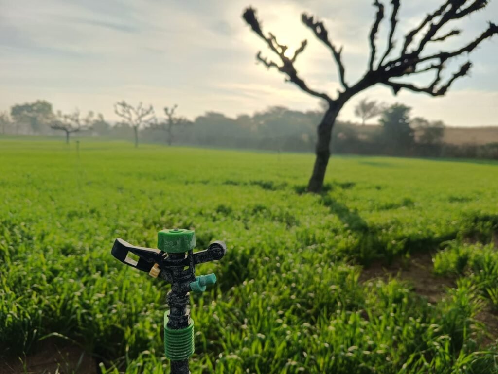 पूरी खेती स्प्रिंकलर और ड्रिप सिंचाई पर Sprinkler Irrigation in Rajasthan आधारित है। खेत में ही उनका घर है। पक्के मकान के साथ भैंसों और बकरियों के लिए झोपड़ियां बनी हुई हैं। उनके पास 5–6 भैंसें और 10–15 बकरियां हैं। बकरियों की झोपड़ी बहुत सुंदर थी।