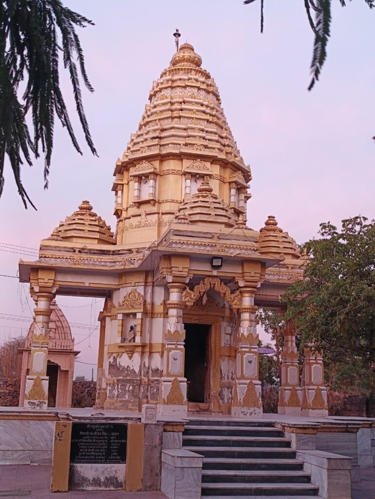 थोड़ा आगे बढ़ने पर हमें इच्छापूर्णी लक्ष्मी माता Ichhapurani Laxmi Mata Mandir का प्राचीन मंदिर दिखाई देता है। यह हमारे यात्रा कार्यक्रम में शामिल नहीं था, फिर भी हम यहां रुकते हैं। यहां दो मंदिर हैं—एक इच्छापूर्णी लक्ष्मी माता का और दूसरा पास ही दक्षिण भारतीय शैली में बना नया श्री राधा-कृष्ण मंदिर Sri Radha Krishna Mandir । हम दोनों मंदिरों में माथा टेकते हैं। सूरज अभी पूर्व दिशा से ही निकला था। इस शांत वातावरण में पूरे परिसर का माहौल बहुत ही रमणीय और आध्यात्मिक प्रतीत हो रहा था। पूरे परिसर में भजन गूंज रहे थे।