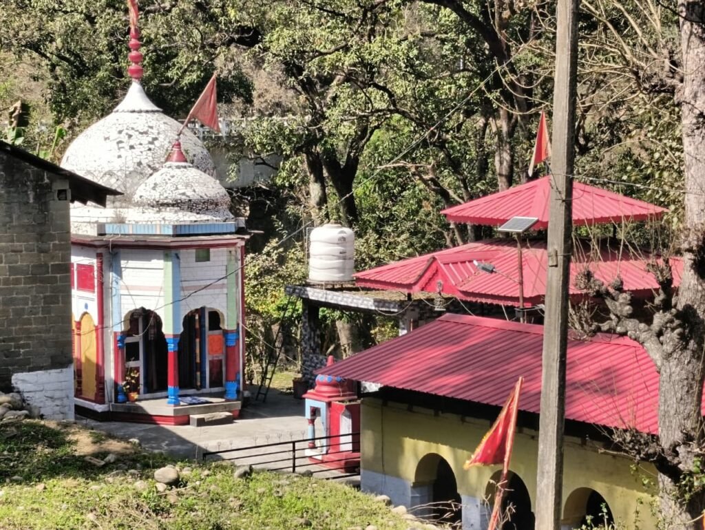 यहाँ से हम नदी के साथ-साथ उस दिशा में चलने लगते हैं जिधर से पानी आ रहा था। नदी के दक्षिणी किनारे पर एक ओर गहरी खाई में नदी बह रही थी और दूसरी ओर ऊँचे पहाड़ थे, जो घनी वनस्पति से ढके हुए थे। ऐसा प्रतीत होता था जैसे हमारी कार के साथ-साथ दो युवतियाँ दौड़ रही हों—एक ने नीली चुन्नी ओढ़ रखी हो और दूसरी ने हरी। थोड़ी ही देर में हम श्री कालीनाथ कालेेश्वर महादेव मंदिर Sri Kalinath Kaleshavr Mahadev Mandir पहुँच जाते हैं।